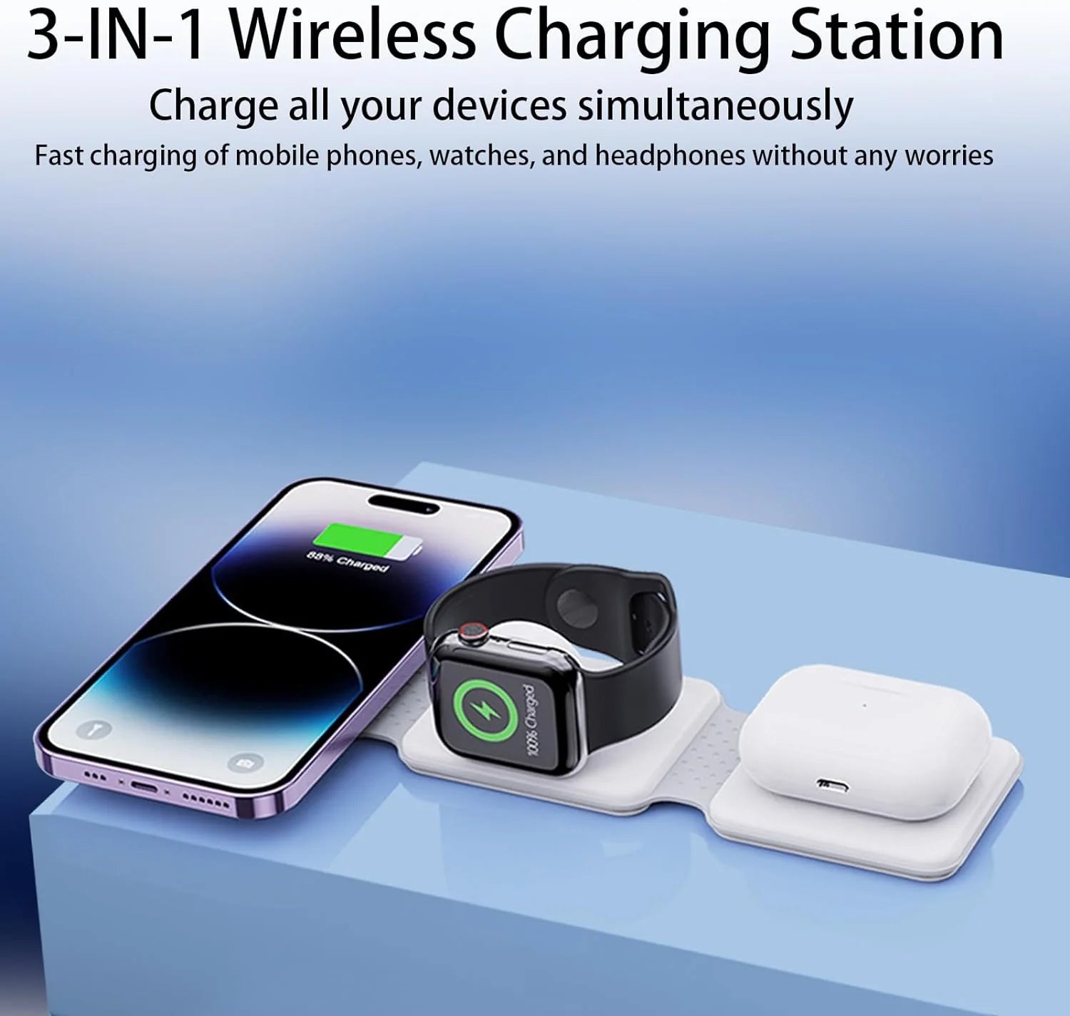 Simplify your life with this stylish, fast, and reliable 3-in-1 charger, perfect for those who are always on the go.